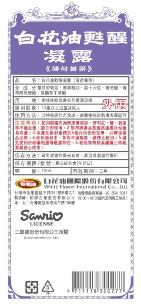 台湾土産の定番・万能アロマオイル【白花油 ロールオン スティック タイプ15g 】クロミ・ハローキティ・キキララ