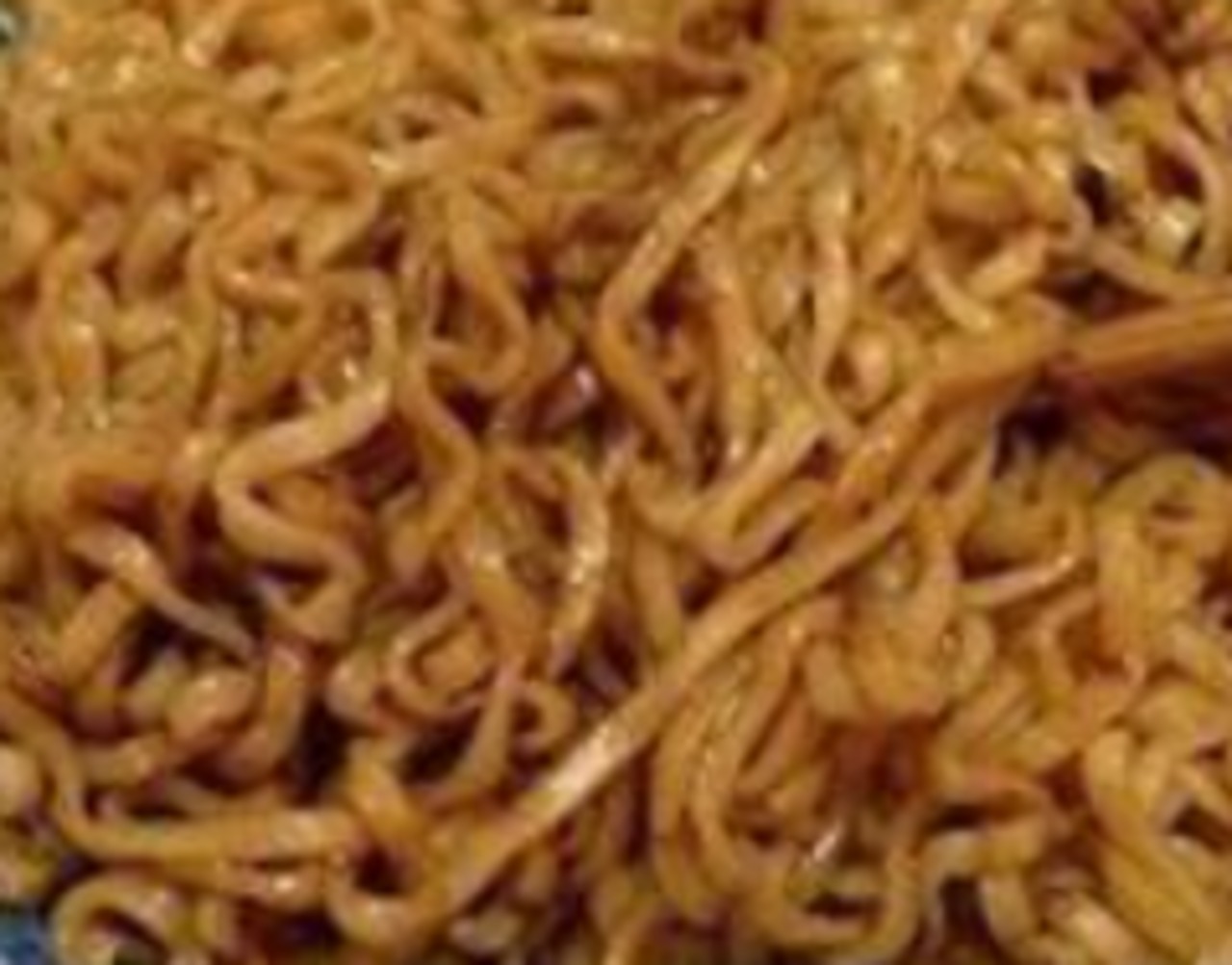 ④①の麵に、「調味油」をあけ、混ぜます。→まぜそばの出来上がりです!
