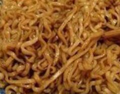 ①お椀に揚げ麵をあけ、お湯を注ぎ3分待ちます